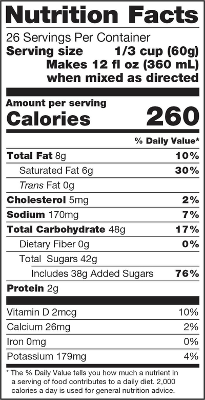 Sugar, Semisweet Chocolate Chips [Sugar, Unsweetened Chocolate, Cocoa Butter, Dextrose, and Soy Lecithin (Emulsifier)], Coconut Oil, Maltodextrin, Milk, Matcha Green Tea. Contains Less than 2% of the Following: Cream Nonfat Milk, Whey, Xanthan Gum, Sodium Caseinate, Natural Flavors, Salt, Silicon Dioxide (Anticaking Agent), Mono and Diglycerides, Dipotassium Phosphate, Chlorella Powder, Soy Lecithin (Emulsifier).