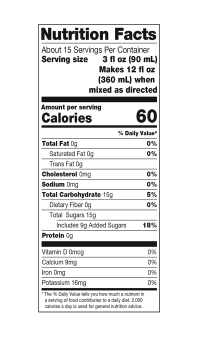 Claims | No Artificial Colors, No Artificial Flavors, Shelf-Stable, Lightly Caffeinated with Green Coffee Extract, Made with Real Fruit Juice, No HFCS, No Preservatives, Sweetened with Cane Sugar and Stevia |