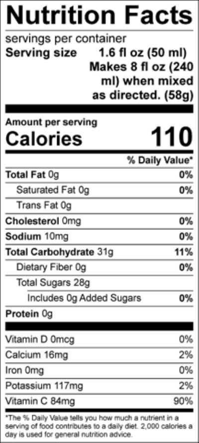 Claims | No Artificial Colors, No Artificial Flavors, 100% Juice, Vitamin C |