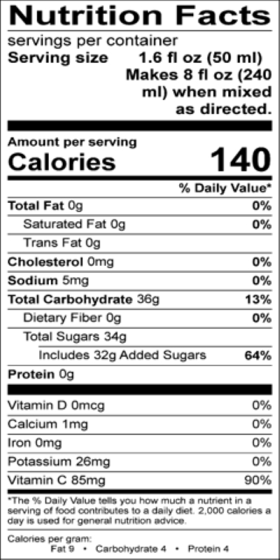 Claims | 12% Juice, No Artificial Colors, Vitamin C |