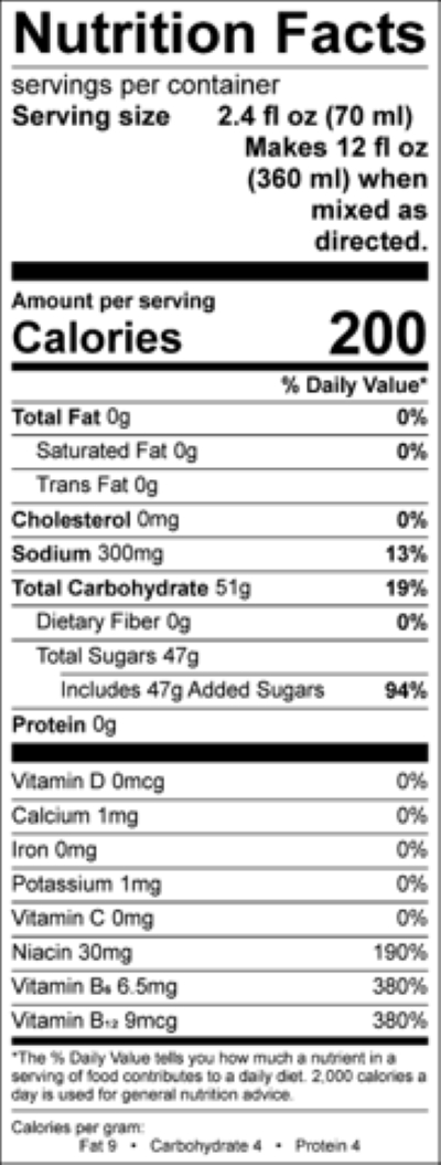 Claims | Caffeine, Vitamin B12, Vitamin B3, Vitamin B5, Vitamin B6, Vitamin C |