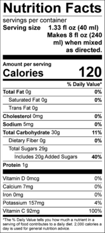 35% Juice, No Artificial Flavors, Vitamin C
