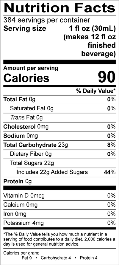 High Fructose Corn Syrup, Filtered Water, Natural and Artificial Flavors, Citric Acid, Yucca Extract, Ascorbic Acid, Quillaia Extract, Sodium Benzoate, Potassium Sorbate, FD&C Yellow #6, FD&C Red #40.