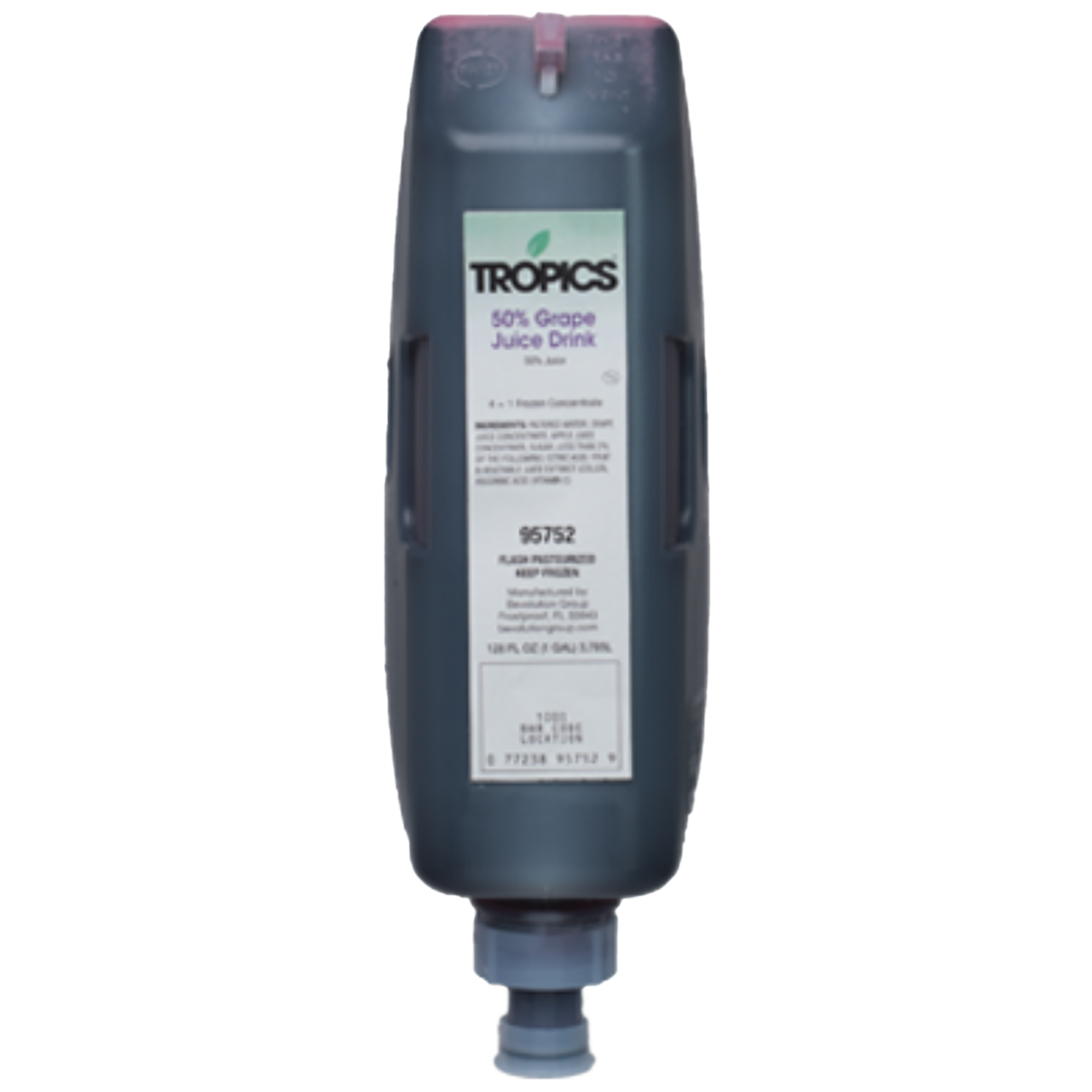 The convenience of frozen meets the flavor of fresh-made in a countertop dispensed 50% grape juice that demands an audible mmmm. You won't find artificial colors or flavors, HFCS or preservatives. Because only the best, all-natural ingredients can create the distinctively delicious taste experience of Tropics Juices.