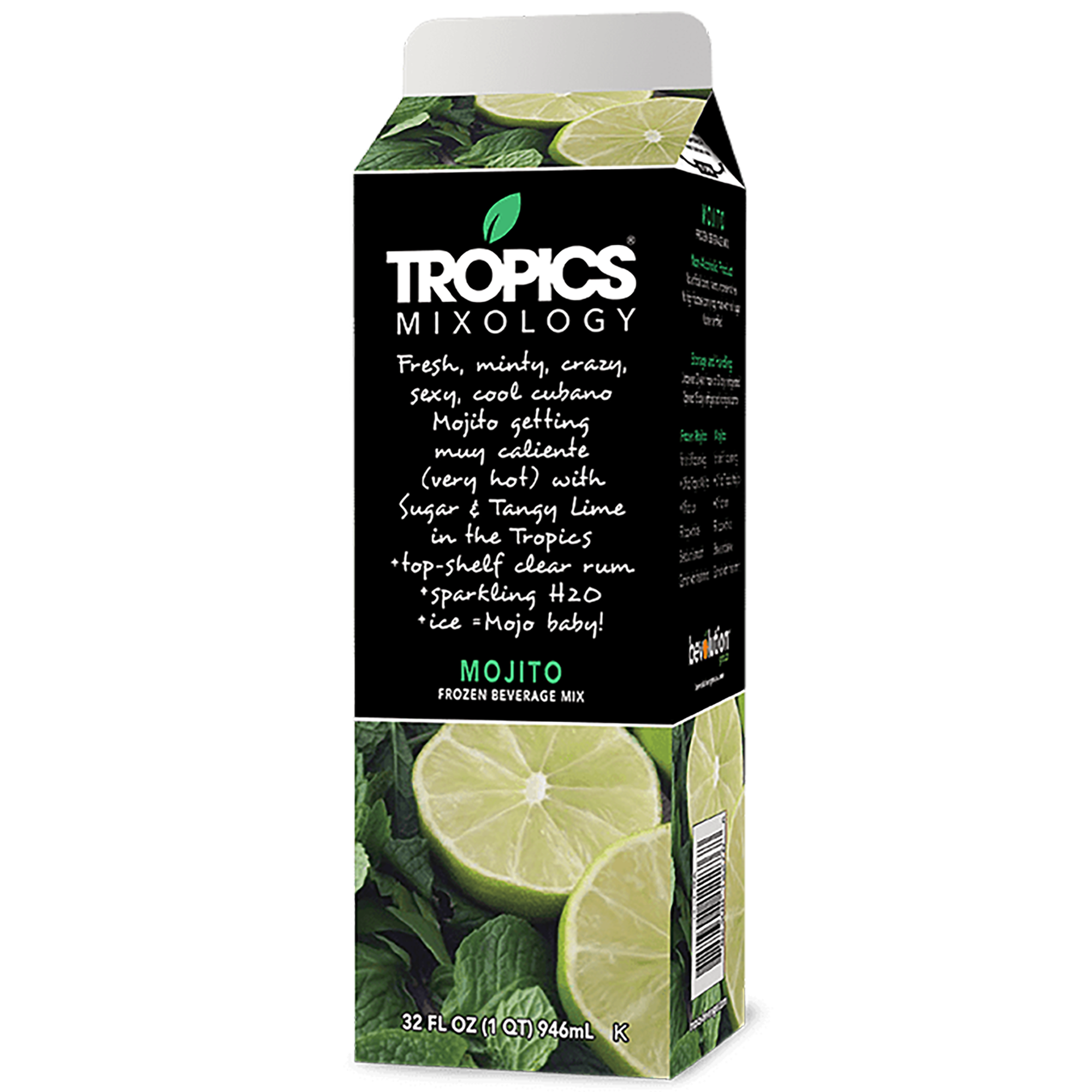 What doesn't go into our Mojito frozen beverage mix matters every bit as much as what does. No artificial colors or flavors. No preservatives or HFCS. Just all-natural ingredients like pure cane sugar and crisp limes sourced from the best growing regions for the highest flavor burst. That's the Tropics Mixology difference.