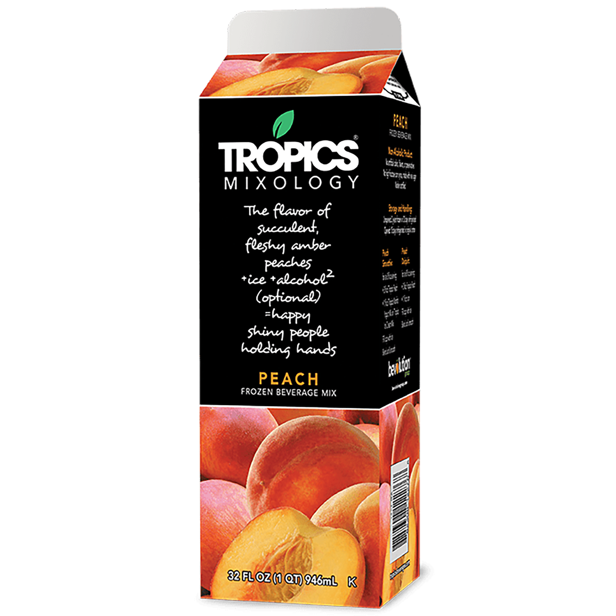 What doesn't go into our Peach frozen beverage mix matters every bit as much as what does. No artificial colors or flavors. No preservatives or HFCS. Just all-natural ingredients like succulent, sweet peaches sourced from the best growing regions for the highest flavor burst. That's the Tropics Mixology difference.