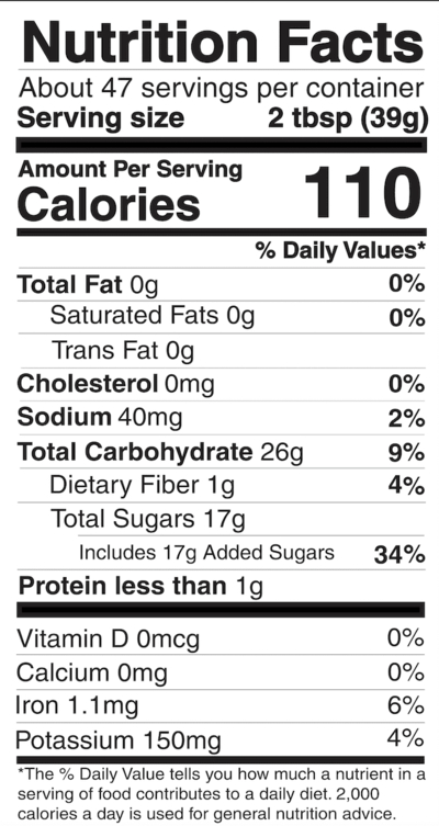 Fructose, Corn Syrup, Filtered Water, Cocoa Powder, Salt, Mono & Diglycerides, Potassium Sorbate, Lactic Acid, Natural Vanilla Flavor, Xanthan Gum.