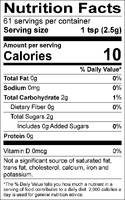 Claims | Cholesterol-Free, Fat-Free, Gluten-Free, Kosher, Sodium-Free |