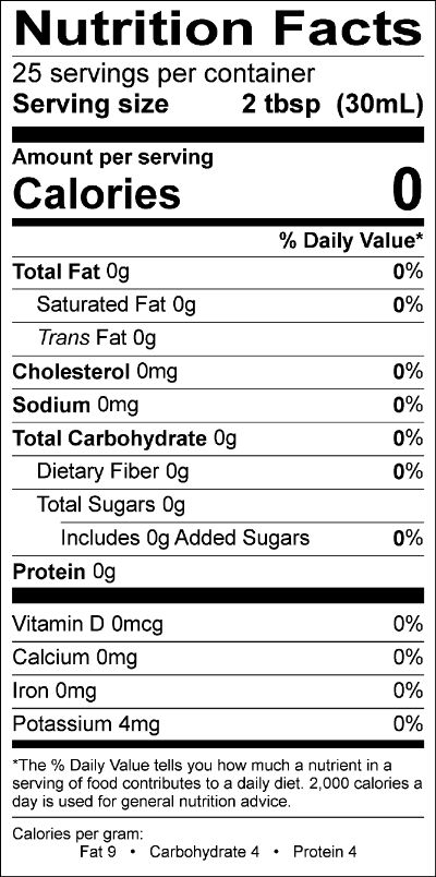 Claims | Cholesterol-Free, Fat-Free, Gluten-Free, Keto, Kosher, Sodium-Free, Vegan |