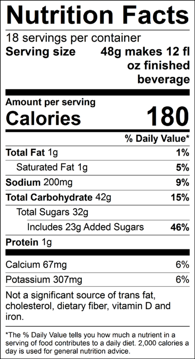 Sugar, Whey, Maltodextrin, Non-Dairy Creamer [Corn Syrup Solids, Coconut Oil, Dipotassium Phosphate, Sodium Caseinate (a milk derivative), Titanium Dioxide, Silicon Dioxide (flow agent), Mono & Diglycerides, Turmeric and Annatto Extracts, and Artificial Flavor], Coffee, Silicon Dioxide (anti-caking agent), Cellulose Gum, Natural and Artificial Flavors, Alkalized Cocoa Powder, Salt.