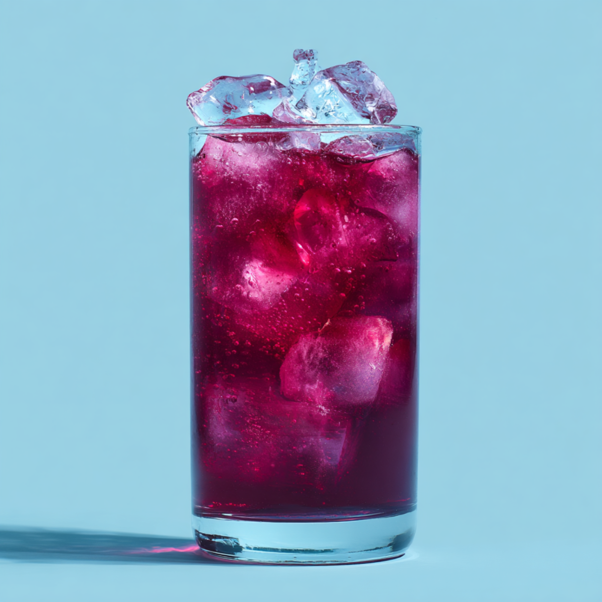 Fill a serving glass with ice. Pour in 10 oz of Mega R Energy Soda. Add 2 pumps of UPOURIA Blueberry Syrup Add 2 pumps of UPOURIA Lemon Syrup