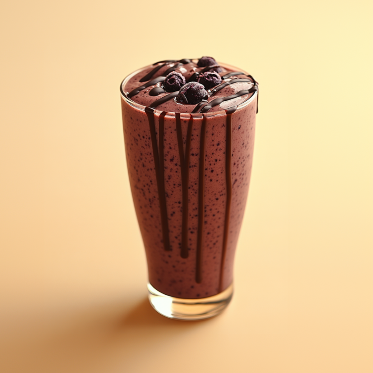 In blender, combine all ingredients and blend until smooth. Drizzle chocolate syrup in a lace pattern inside tumbler before pouring drink into glass.