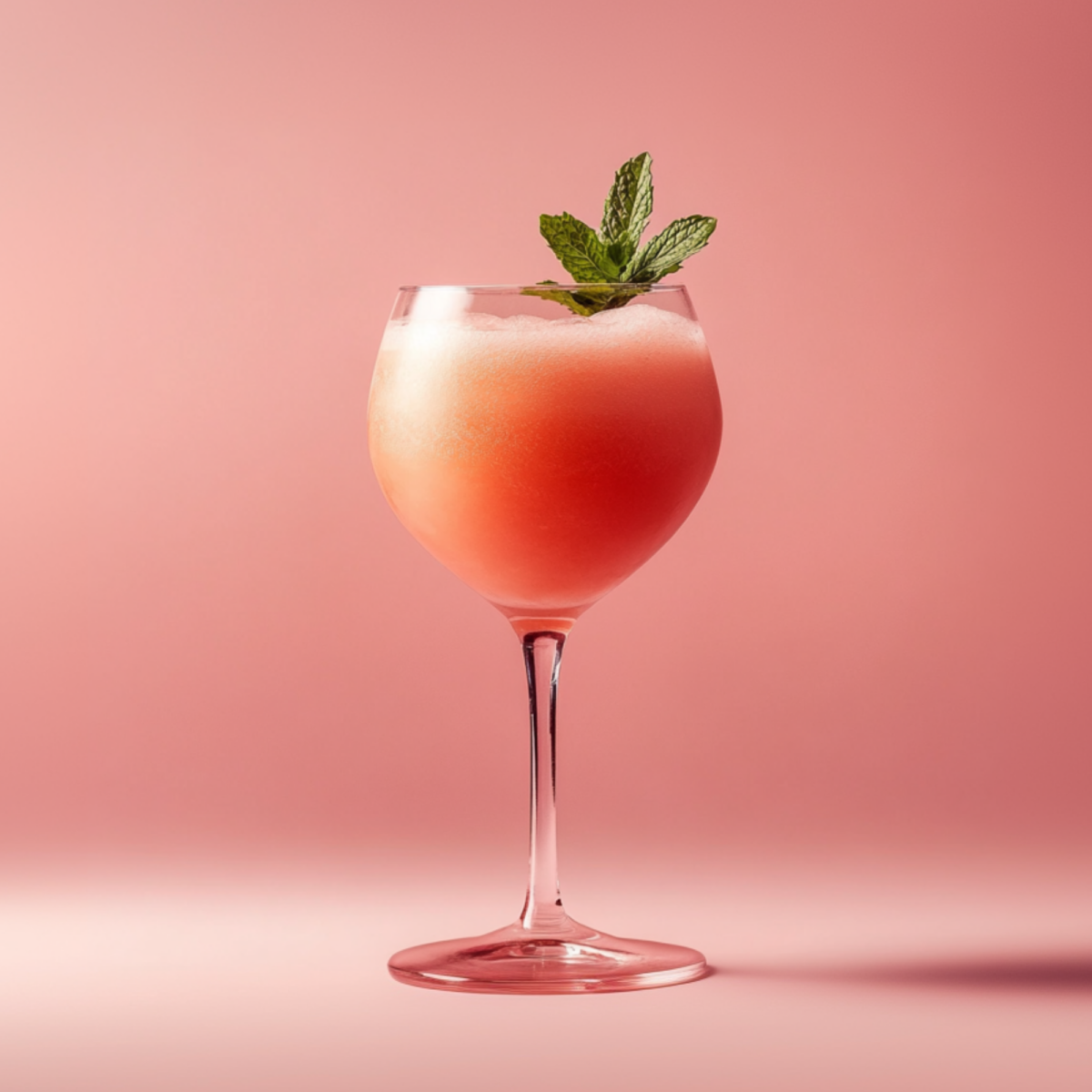 In blender, combine all ingredients and blend until smooth. Pour contents into wine glass, champagne flute or coupe. Garnish with fresh strawberry and mint sprig.