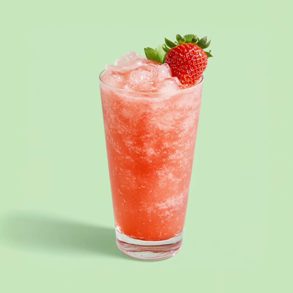In blender, combine ice, Tropics Mixology Strawberry Puree and water or orange juice.