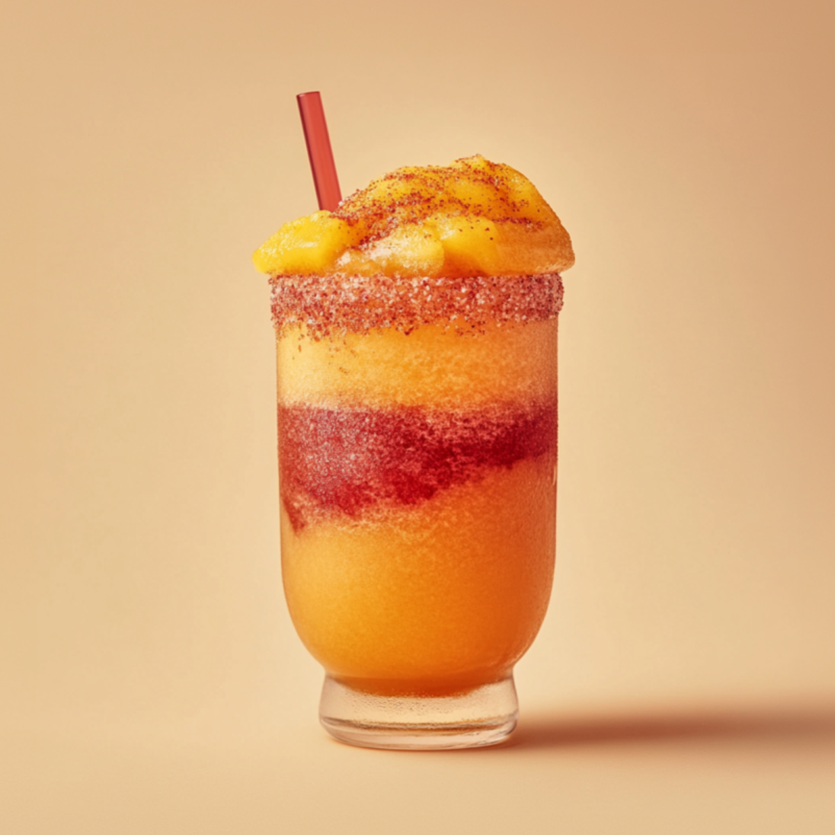 Pour the Tropics blended ingredients into the glass on top of the layer of chamoy.
