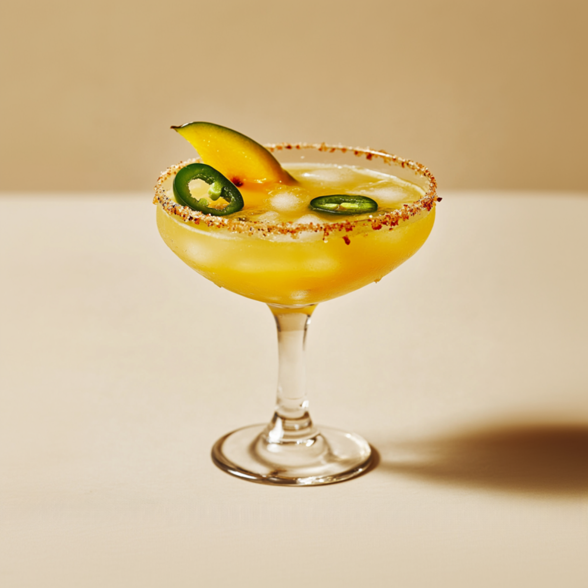 Garnish with a sprinkling of cilantro leaves plus skewered lime slice and jalapeno wheel.