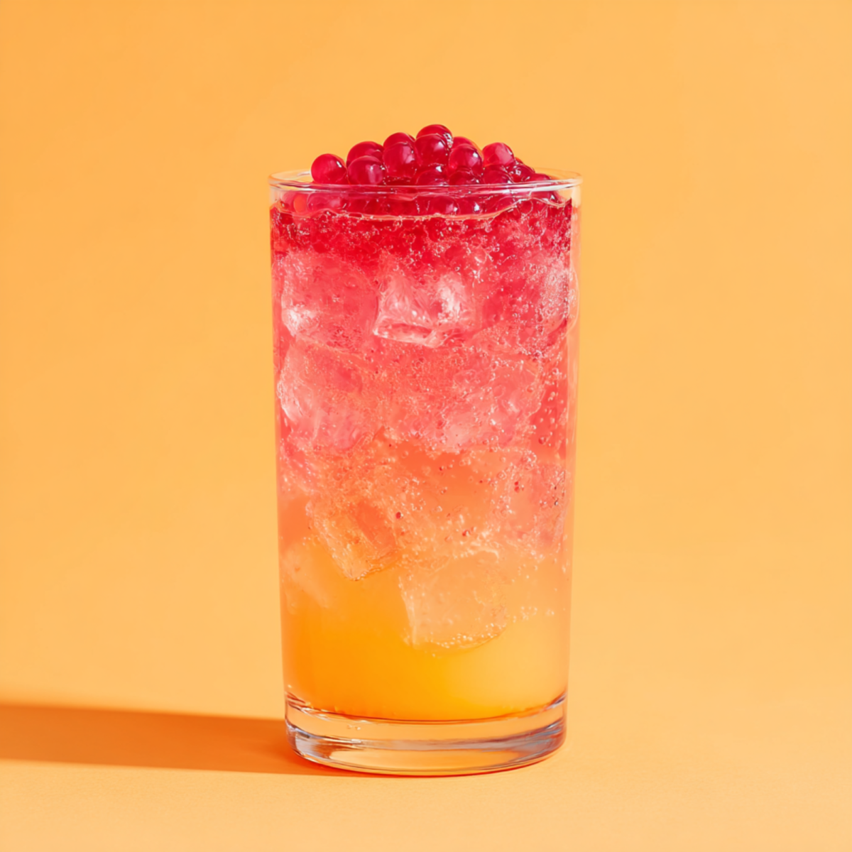 Fill a serving glass with ice. Pour in 10 oz of green tea. Add 4 pumps of UPOURIA Peach Syrup Add Strawberry Popping Boba