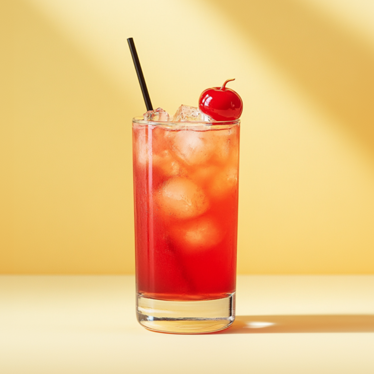 Fill rocks glass with ice and add a splash of Tropics Mixology Grenadine Syrup and vodka or rum. Fill remaining glass with ginger ale. Stir and garnish with a cherry.