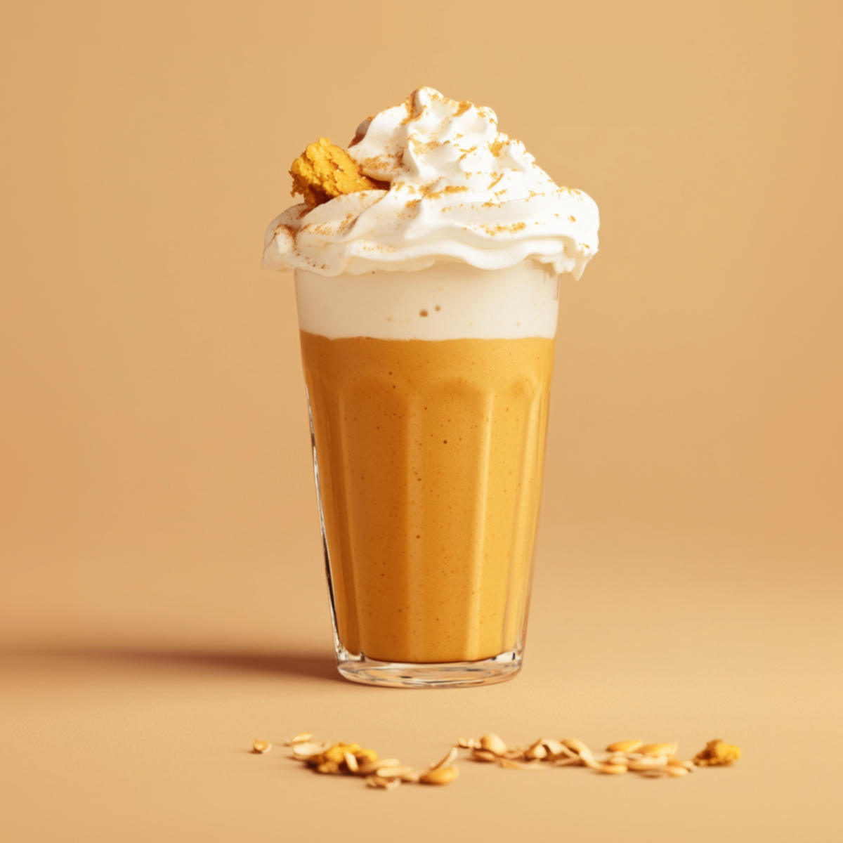 Add Dr. Smoothie Cafe Essentials Pumpkin Spice Latte and Dr. Smoothie Cafe Essentials Vanilla Cream, plus fresh banana.